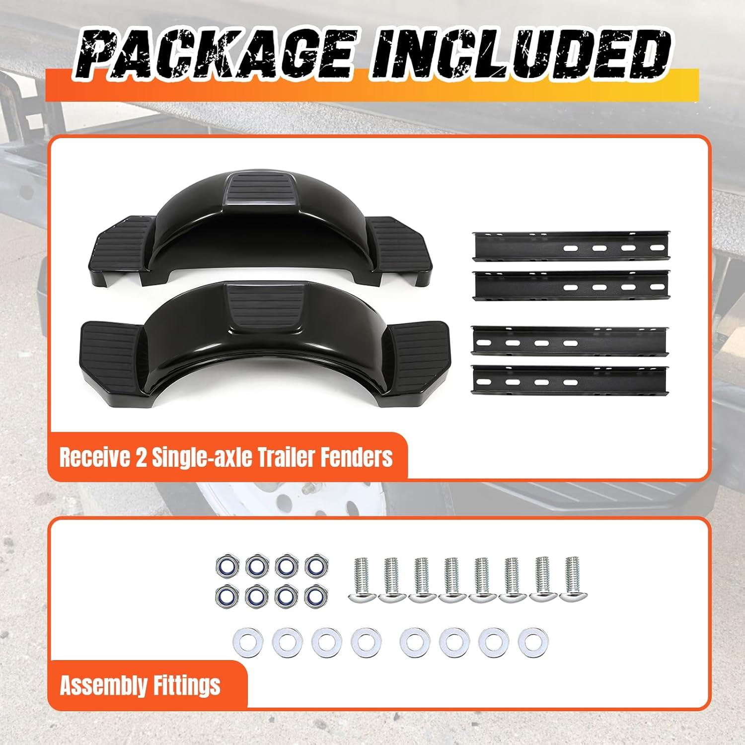 Fits single-axle trailers w/ 13″ diameter wheels. Please check your wheel size before purchasing